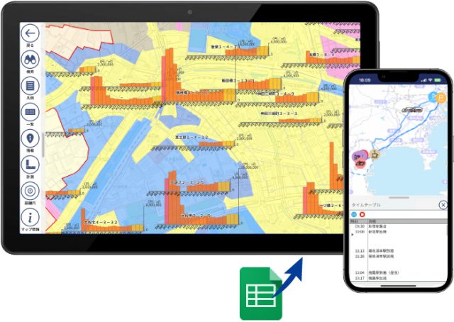 「Class Studio」を使えば、オープンデータや自社のデータを簡単に地図上に色分け表示やグラフ表示して、空間的に分析することができます。スマホ等のモバイル端末でWEBサイトをアプリのように使える仕組みPWA(Progressive Web Apps)にも対応していますので、利用者は、スマホやタブレットにて、ホーム画面のアイコンからアプリのように簡単に実行できます。