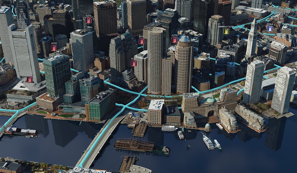 図3:米国マサチューセッツ州ボストンにおける2D/3Dデータを統合したデジタルツイン
