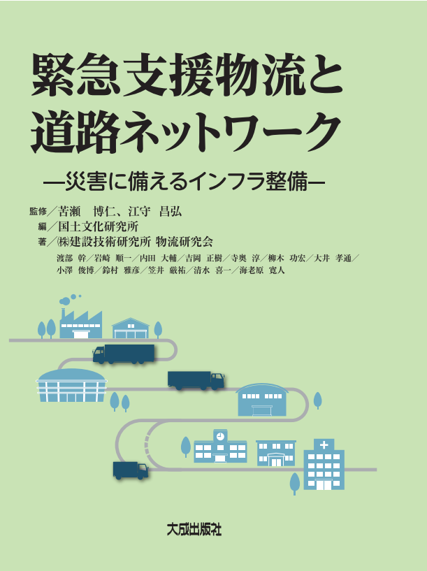 我々(株)建設技術研究所では、12月15日に「緊急支援物流と道路ネットワーク」という書籍を大成出版社より発売しました。その紹介をさせていただきたいと思います(下図)。