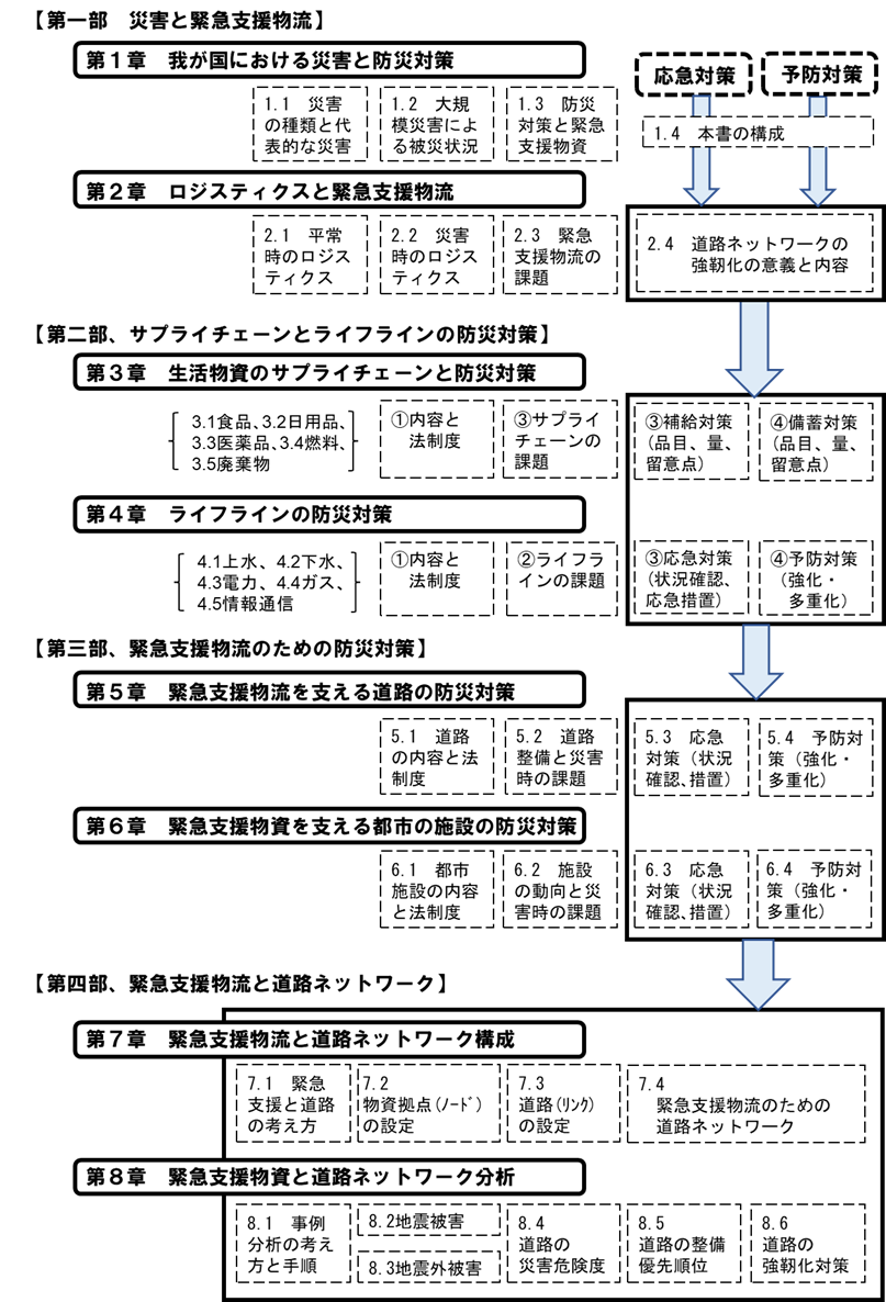 本書は、自然災害が多い我が国において、災害時の緊急支援物資の供給に焦点を当て、これを実現するために不可欠な道路ネットワークの計画を考えていくものです。すなわち、災害時に生命と財産の安全確保のために、最初に避難や救助を行うことになりますが、次に避難や救助後に生命を維持するためには、生活物資のサプライチェーンや供給処理などのライフラインの確保が不可欠になります。本書はこの点に着目して、そのために必要不可欠なインフラとしての道路ネットワークの強靱化を考えたものでございます。